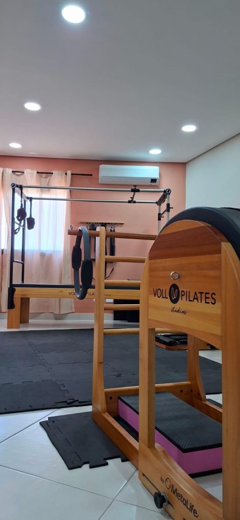 Studio PilatesEsta modalidade é realizada em estúdios equipados com aparelhos específicos de Pilates, como o Reformer, a Cadillac, a Chair e o Barrel. Os exercícios são mais dinâmicos e variados, muitas vezes utilizando molas como resistência ajustável para criar um treino personalizado que se adapte às necessidades individuais de cada praticante.